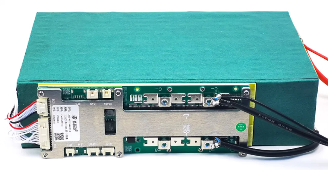 13S8P (Samsung 21700-50S). Hardware 150 A JBD BMS with default 120 A software limit. RS485 communication (A=Blue, B=White).